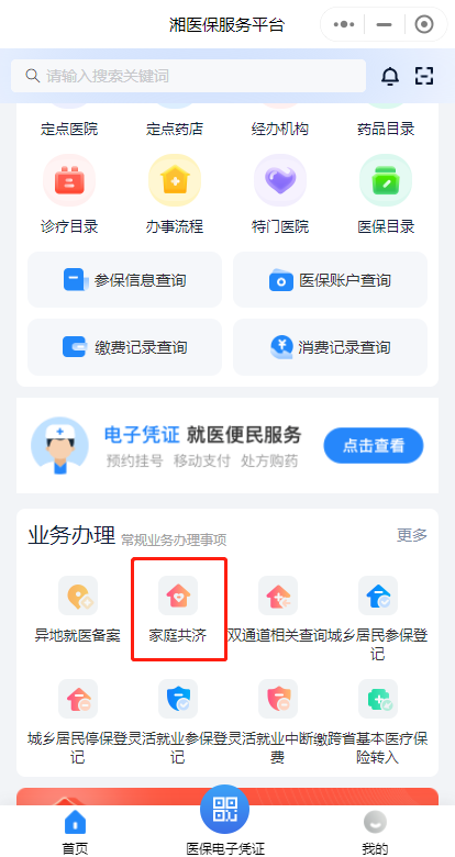 參保職工(以下稱為主賬戶人)可通過(guò)“湘醫(yī)保”App或小程序“家庭共濟(jì)綁定”功能綁定本市參保的配偶、父母或子女(以下稱為被綁定人)醫(yī)保信息,被綁定人在定點(diǎn)醫(yī)藥機(jī)構(gòu)產(chǎn)生的符合個(gè)人賬戶資金使用范圍的醫(yī)藥費(fèi)用,可以通過(guò)家庭共濟(jì)的方式使用主賬戶人的個(gè)人賬戶結(jié)余進(jìn)行支付,實(shí)現(xiàn)個(gè)人醫(yī)藥費(fèi)用家庭共濟(jì)分擔(dān)。