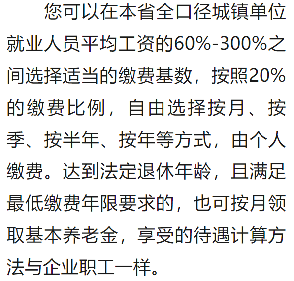 情況三:制度實施時,您距60周歲的規(guī)定領(lǐng)取年齡超過15年,應(yīng)按年繳費,累計繳費不少于15年才能領(lǐng)養(yǎng)老金。